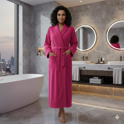 • Peignoir de bain éponge rose sombre